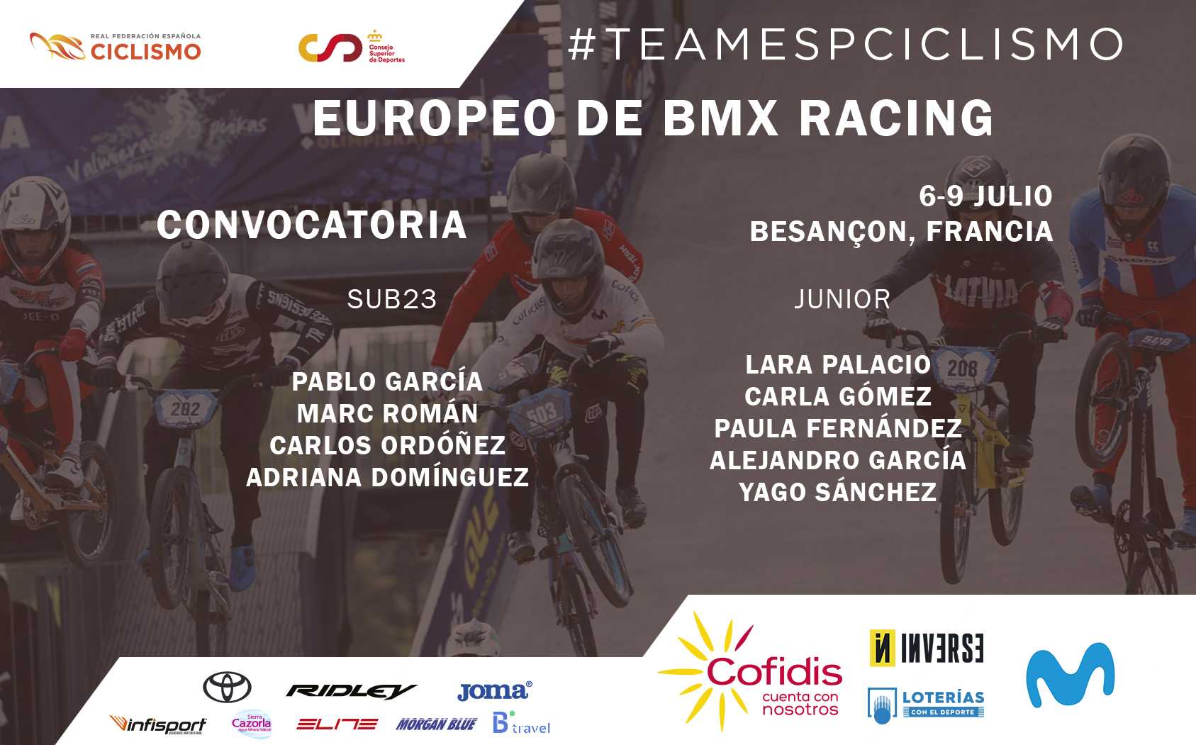 El equipo nacional competirá en la localidad francesa de Besançon del 6 al 9 de julio con un total de 9 pilotos entre los que se encuentra la talaverana del Club Bmx El Casar, Carla Gómez.