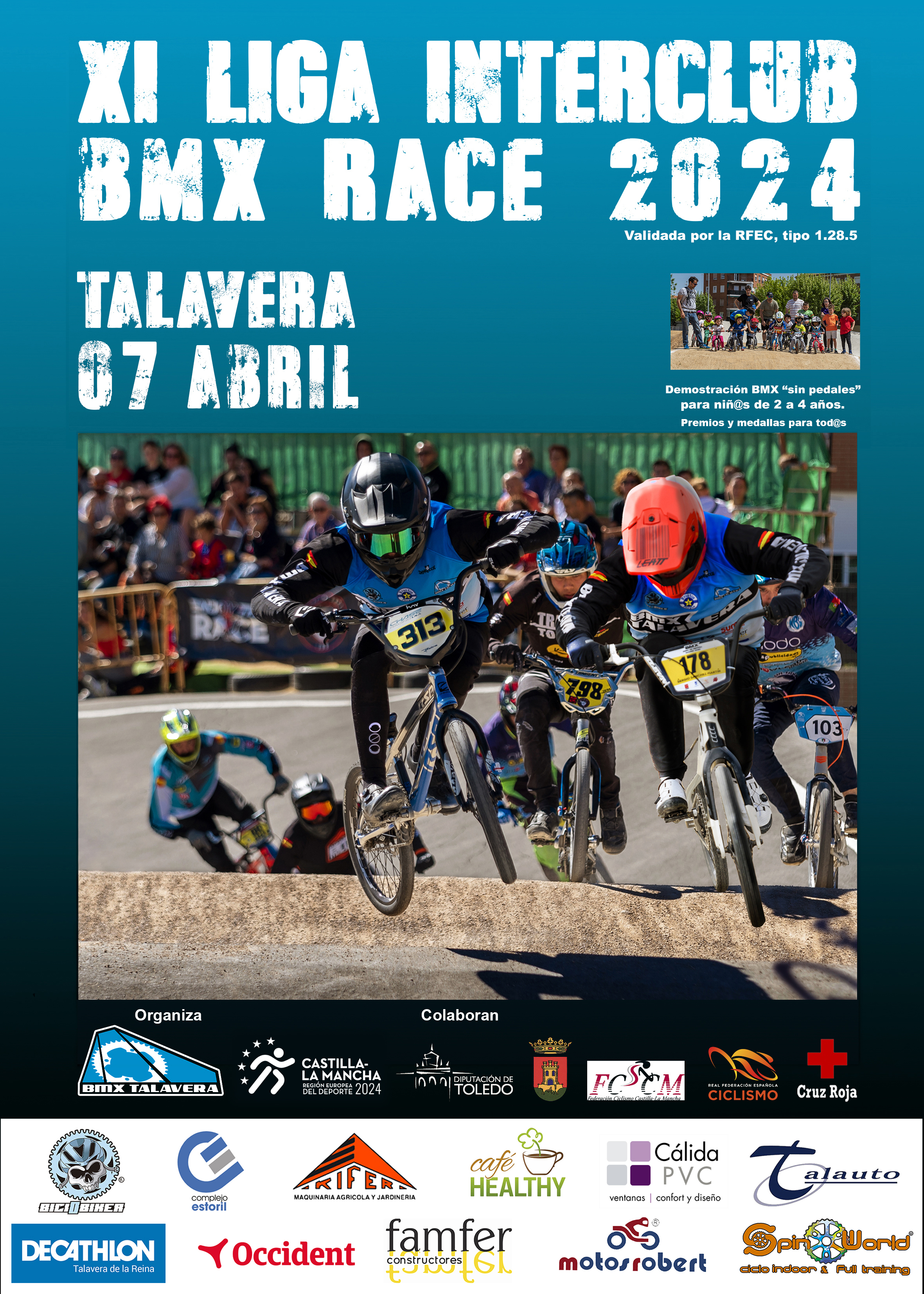La XI Liga Interclubs BMX Race 2024 llega este domingo 7 de abril al recientemente remozado Circuito Municipal de BMX de Talavera de la Reina; una prueba organizada por el Club BMX Talavera que está enmarcada en del programa Castilla La Mancha Región Europea del Deporte 2024.