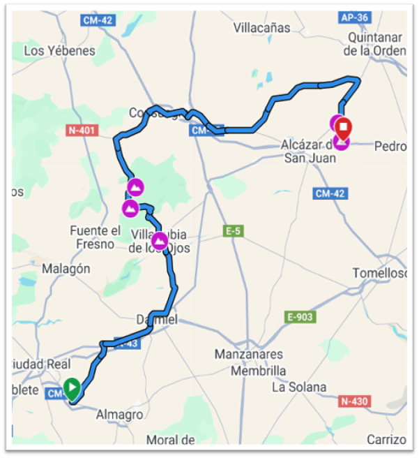 El recorrido comienza suave, pero pronto llega el Alto de los Santos (km 58,6), primera dificultad del día y anticipo de lo que viene. Tras él, la Meta Volante en Consuegra (km 94,2) marcará el inicio de la batalla por los puntos intermedios.