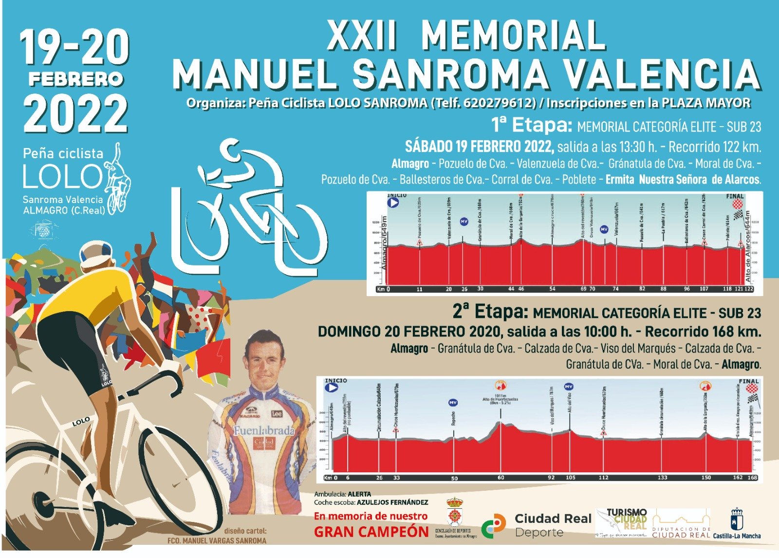 Almagro acogerá este fin de semana la XXII edición del Memorial Manuel Sanroma Valencia, carrera que nació como homenaje a este ciclista profesional natural de Almagro, fallecido en la Volta a Cataluña de 1999, y que ya se ha convertido en una de las citas élite/sub23 más importantes a nivel nacional. Hasta la localidad encajera se desplazarán 24 de los mejores equipos del país y cerca de 170 ciclistas para participar en la inauguración de la temporada de carretera en Castilla-La Mancha.