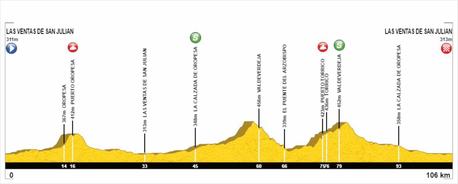 La salida se dará a las 10:30 horas de la mañana desde Las Ventas de San Julián. Por delante, 106 kilómetros de recorrido semi llano, pero con subidas muy cortas y rápidas que hacen más dura la carrera y permite pelotones estirados. La previsión de fuerte viento de costado durante la jornada favorecerá también los cortes en el pelotón y la formación de abanicos.