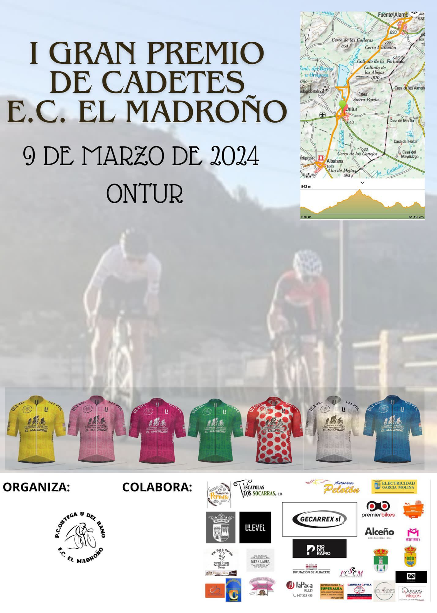 La Peña Ciclista Ortega y del Ramo organiza el I Trofeo Cadetes El Madroño en Ontur (Albacete) que tendrá lugar el próximo 9 de marzo, a partir de las 11 horas. Cuentan con la colaboración de la Diputación de Albacete, del Ayuntamiento de Ontur, Eleven y numerosas firmas comerciales de la localidad que se han volcado con el ciclismo.