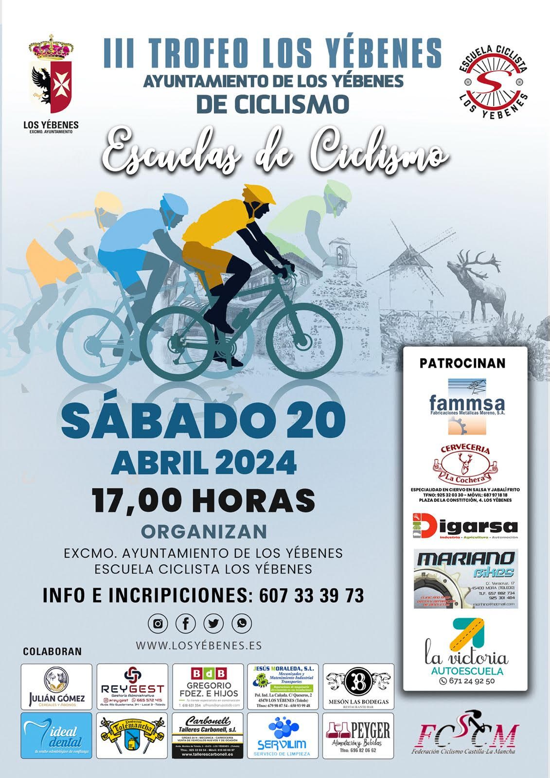 La cita con el ciclismo escolar será el próximo sábado 20 de abril, a partir de las 17:00 horas, en un circuito urbano muy vistoso, diseñado en la principal arteria de la localidad: la calle Real de Abajo. Hasta Los Yébenes se desplazarán los ciclistas de las escuelas regionales, además de algunos clubes madrileños que ya han confirmado su inscripción. Como anfitriona, la Escuela de Ciclismo Los Yébenes, Fammsa Team, una escuela joven, creada en el año 2019, que continúa bajo la dirección deportiva de Pedro Carbonell.