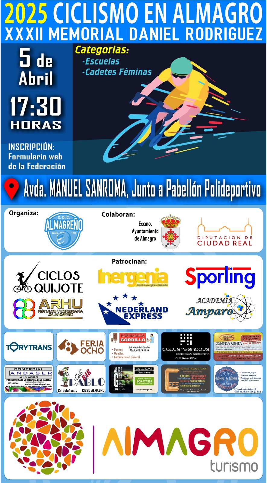 El Memorial Daniel Rodríguez dará el pistoletazo de salida al Trofeo Federación de Escuelas de ciclismo de Castilla-La Mancha 2025 el sábado 5 de abril, a partir de las 17:30 horas, en Almagro (Ciudad Real).