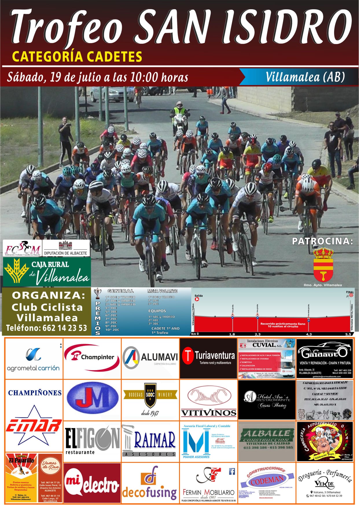 La prueba, que se disputará el próximo sábado 19 de julio, a las 10 horas, estará de nuevo organizada por el Club Ciclista Villamalea, con el patrocinio del Ayuntamiento de la localidad, Diputación de Albacete y Caja Rural de Villamalea. Para los organizadores supone una de las citas más especiales del año por lo que significa: “la apuesta del CC Villamalea por los cadetes, una categoría que se incluye dentro del ciclismo base que necesita mucho apoyo por servir de nexo entre la etapa escolar y el futuro profesional. Y, sobre todo, necesita que se creen carreras específicas para ellos.”