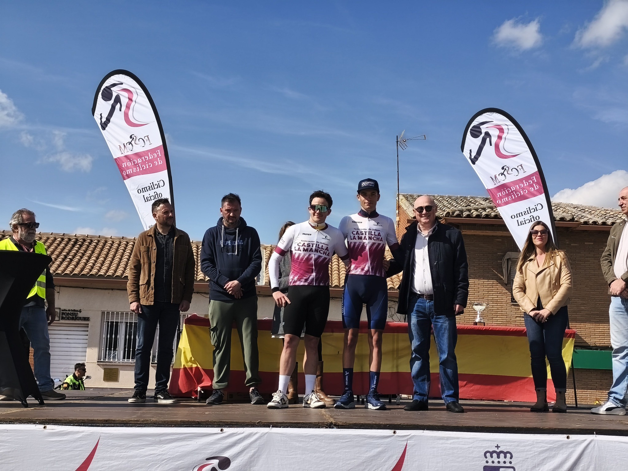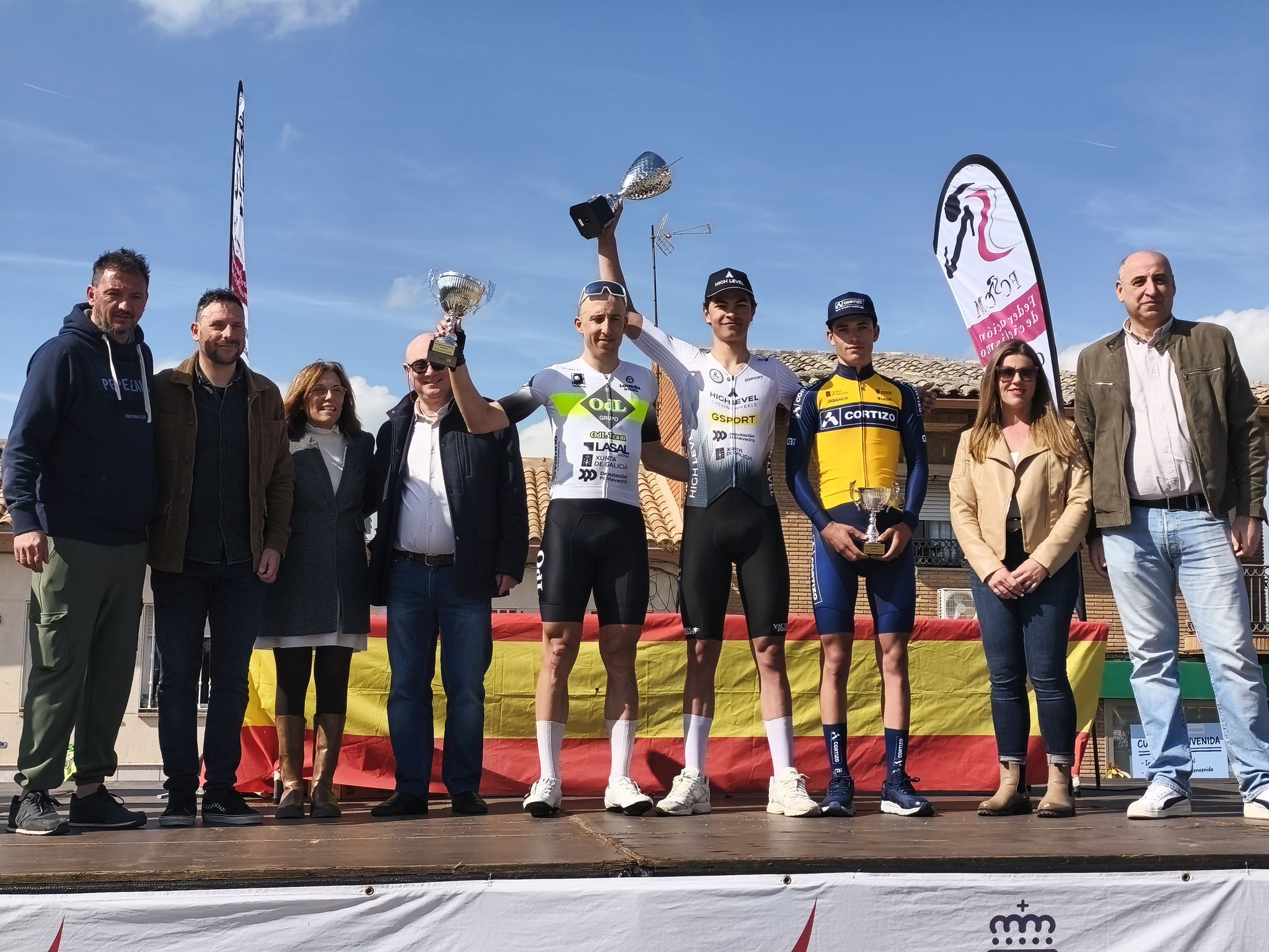 En la entrega protocolaria de trofeos estuvieron presentes Vicente Alumbreros, presidente de la Federación de Ciclismo de Castilla-La Mancha, y miembros del equipo de gobierno de Olías del Rey.