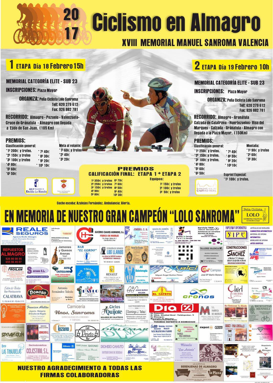 Organizado por la Peña Ciclista Lolo Sanroma de Almagro, el Memorial se disputará en dos etapas, con una previsión de participación de 160 corredores.