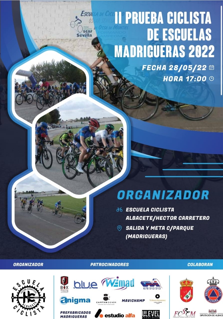 La Escuela Ciclista Albacete/Héctor Carretero vive su primera temporada como entidad independiente dentro del ciclismo base de la región tras su nacimiento a finales del año pasado. El próximo sábado 28 de mayo se estrenará como organizadora con la II Prueba Ciclista de Escuelas Madrigueras 2022, cuarta prueba puntuable del Trofeo Federación de Castilla-La Mancha, que se disputará en esta localidad albaceteña a partir de las 17 horas.