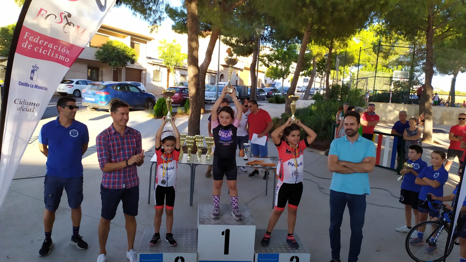 Estuvieron presentes en la entrega de trofeos Julián Alberto Rubio, concejal de deportes, y Felipe López, teniente de alcalde, como representantes del Ayuntamiento de Bolaños, que un año más ha apoyado al ciclismo base regional actuando como anfitrión de este Trofeo.
