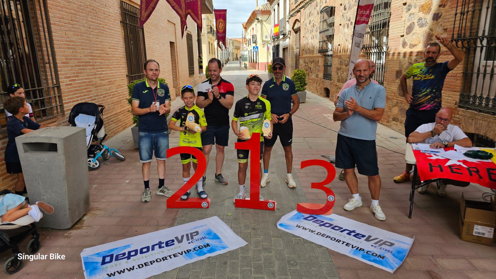 Ajustadísimo final de temporada va a tener también la categoría infantil, en un duelo entre José Ignacio Espinosa (MP Racing Maquivi), más regular, y Ángel Cañas (Almagreño), con más victorias. Sin embargo, ninguno de los dos se llevó la victoria en Herencia. Desde las primeras vueltas saltan del pelotón los ciclistas del Villarrobledo Eric Albertos y Adrián Sevilla, que rodaron juntos en cabeza durante el resto de la carrera, con victoria para el primero. Por detrás se formó un pequeño grupo de corredores que no llegó a alcanzarlos y que se jugó el resto de posiciones del podio, que fueron para Javier Sánchez (MP Racing Maquivi), Ángel Cañas y la Campeona de España Silvia Castillejos (Fco. Javier Cerezo), líder además del podio femenino. Espinosa fue sexto en meta. Trofeos también para Magdalena Pulpón (Villarrobledo) y Alba Ramírez (Fco. Javier Cerezo).