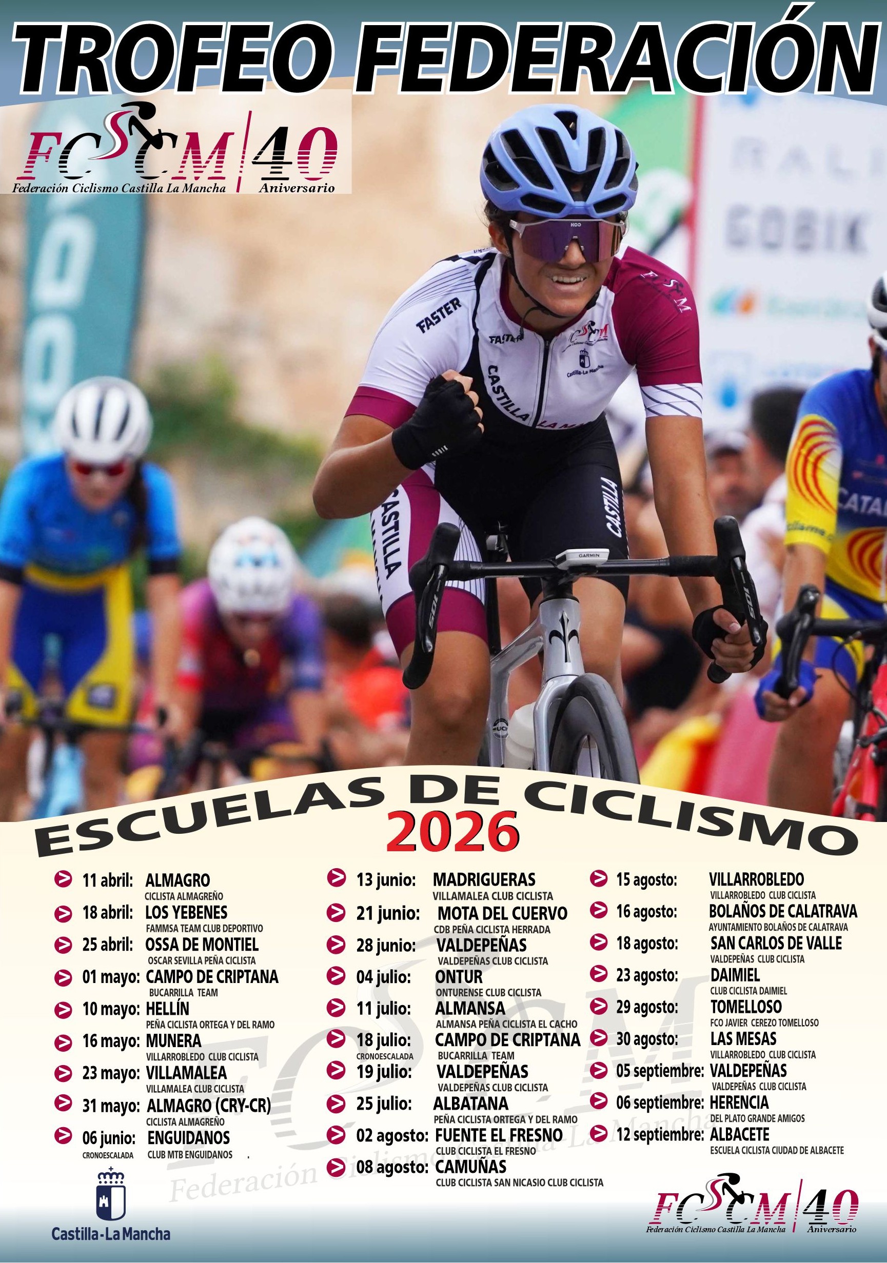 El circuito regional de escuelas se ha consolidado en el calendario ciclista castellanomanchego entre los meses de abril y septiembre. La edición 2026 presenta veintiocho carreras en las que competirán centenares de jóvenes ciclistas, chicos y chicas, llegados de todas las escuelas de la región, pero también de equipos pertenecientes sobre todo a las comunidades vecinas, como Madrid, Comunidad Valenciana, Murcia y Extremadura.