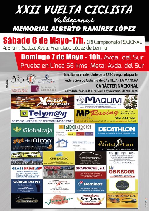 Valdepeñas acoge este fin de semana la XXII Vuelta Ciclista Valdepeñas ‘Memorial Alberto Ramírez López’ en la que participarán 175 ciclistas de categoría cadete y junior, de 25 equipos procedentes de todo el territorio nacional.