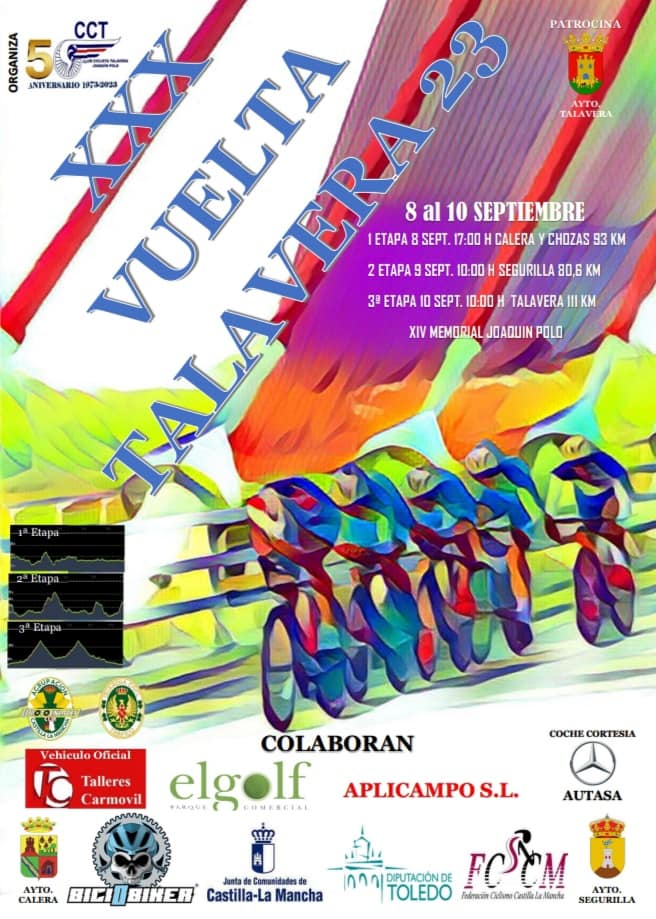 La Vuelta a Talavera arrancará el viernes 8 de septiembre, a partir de las 16:55 horas, en una primera etapa con salida y llegada en la localidad de Calera y Chozas. Una etapa llana de 93 km. con dos pequeños puntos montañosos de 3ª categoría en los Altos del Torrico y Alcolea. La Meta Volante estará ubicada en Calera y Chozas.