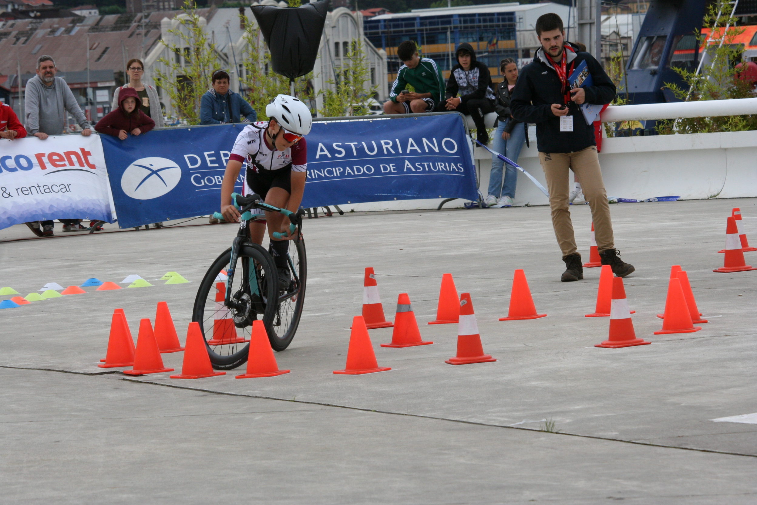 La lluvia, que había caído con intensidad durante la mañana, cesaba casi a la hora del inicio de la prueba dando una tregua a los infantiles en el circuito instalado en el Centro Niemeyer. Discreta actuación de las féminas infantiles, donde la mejor situada era Vega García, de segundo año, con un puesto 19. Antonella Tibasosa era 35, mientras que Celia García y Elena Sánchez quedaban descolgadas en la clasificación tras sufrir algunas penalizaciones. Puesto 12 por equipos para las manchegas.