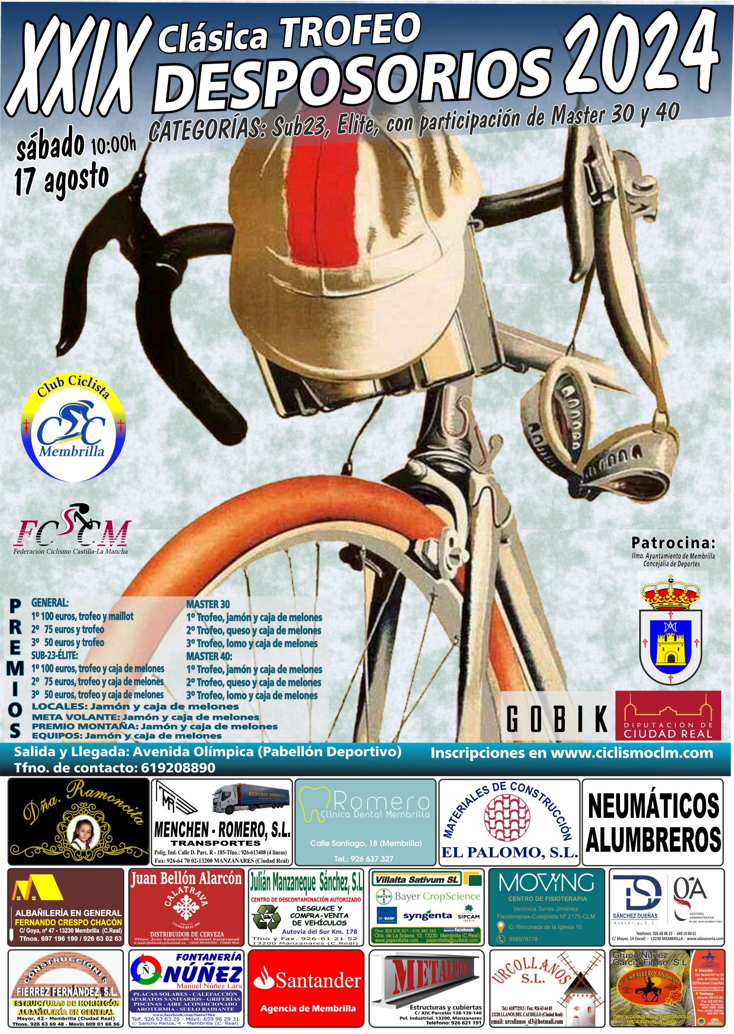 Los ciclistas élite, sub23 y Máster 30-40 vivirán una nueva cita con una de las clásicas de referencia de La Mancha, el Trofeo Desposorios de Membrilla, que este año cumple ya una trayectoria de veintinueve años congregando a los mejores equipos de la parrilla nacional.