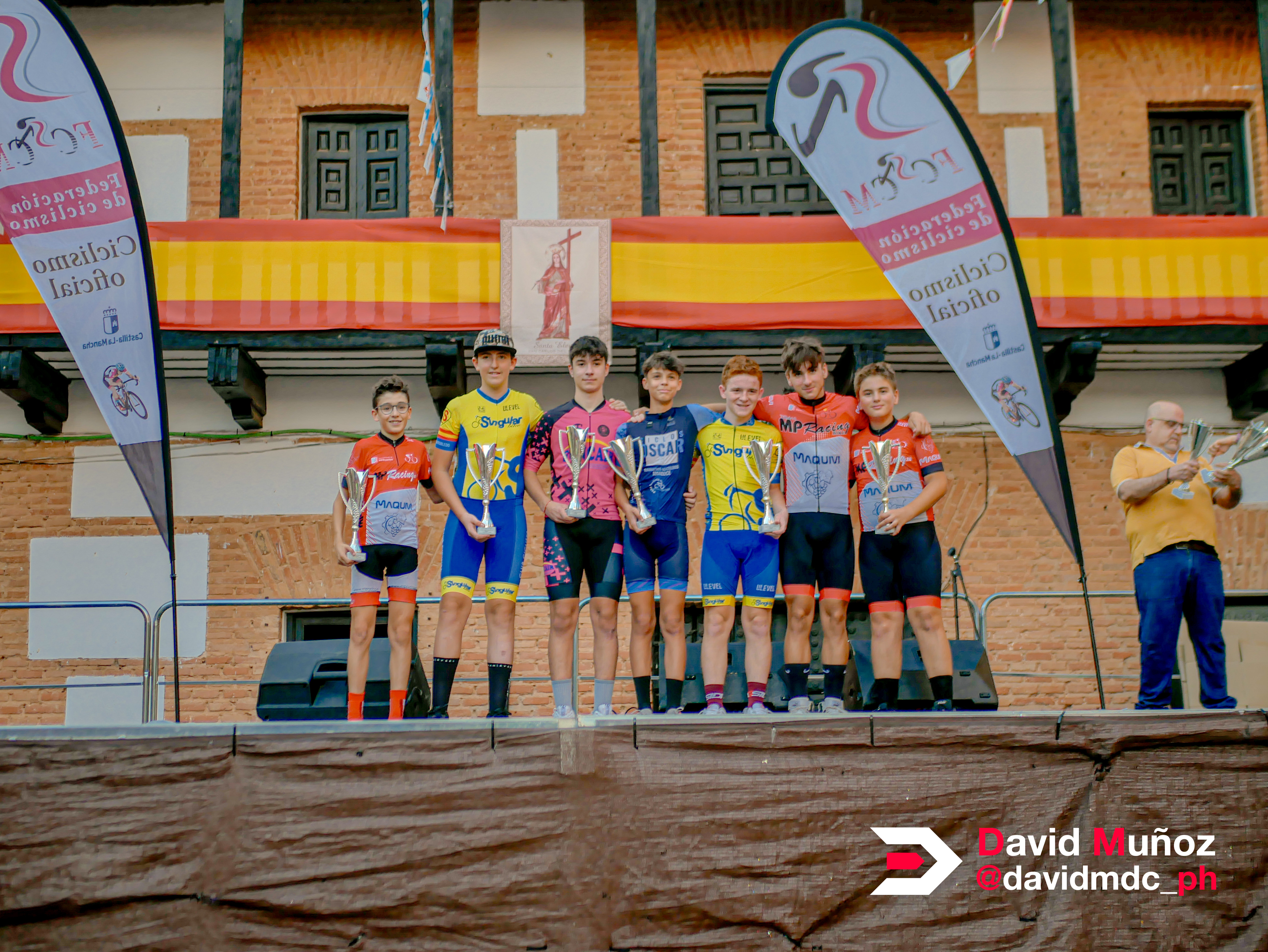 El Trofeo Santa Elena-Ayuntamiento de San Carlos del Valle celebraba sus veinte años de vida como suele ser habitual en esta prueba ciclista para escuelas: arropado por toda la población de la pequeña localidad ciudadrealeña que, un año más, se echó a la calle para aplaudir a los cerca de setenta participantes llegados de diferentes puntos de Castilla-La Mancha y de Madrid. “Es un día especial para el pueblo”, reconocían desde un consistorio que sigue apostando por el apoyo al ciclismo base regional a través del club organizador: El Club Ciclista Valdepeñas. Tarde no muy calurosa en plenas fiestas locales de Santa Elena, en la que las calles ofrecían una estampa muy vinculada al pasado más reciente: vecinos y vecinas que salen a sus puertas, sentados en sus sillas, para animar a los ciclistas, llenando todas las aceras del recorrido.