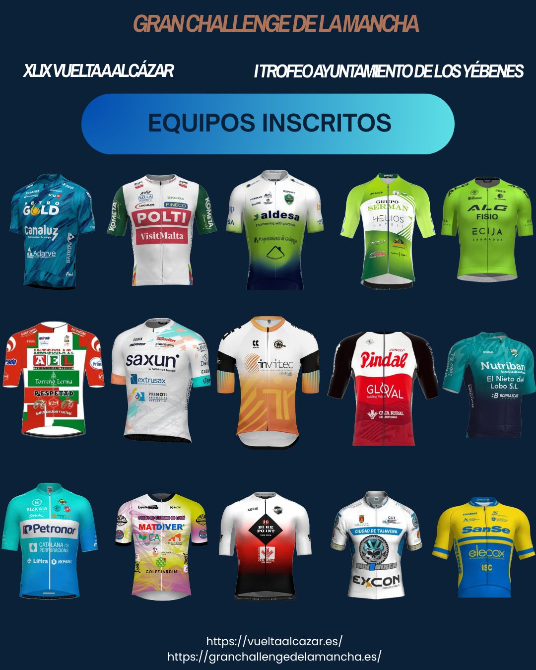 Recién incorporada al calendario ciclista nacional, la Gran Challenge de La Mancha se perfila como un serio referente del ciclismo junior en la zona centro del país. Está compuesta por dos etapas, la Vuelta Ciclista a Alcázar y el Trofeo Ayuntamiento de Los Yébenes. La competición está organizada por dos importantes clubes castellanomanchegos, el C.D. Alcázar Bikes y la Escuela Ciclista Los Yébenes, que vieron en la unión de sus respectivas carreras una oportunidad única para conseguir mayor participación, al tiempo que presentaban una novedad en la región: un formato Challenge de la categoría que recorriese dos provincias, Toledo y Ciudad Real.