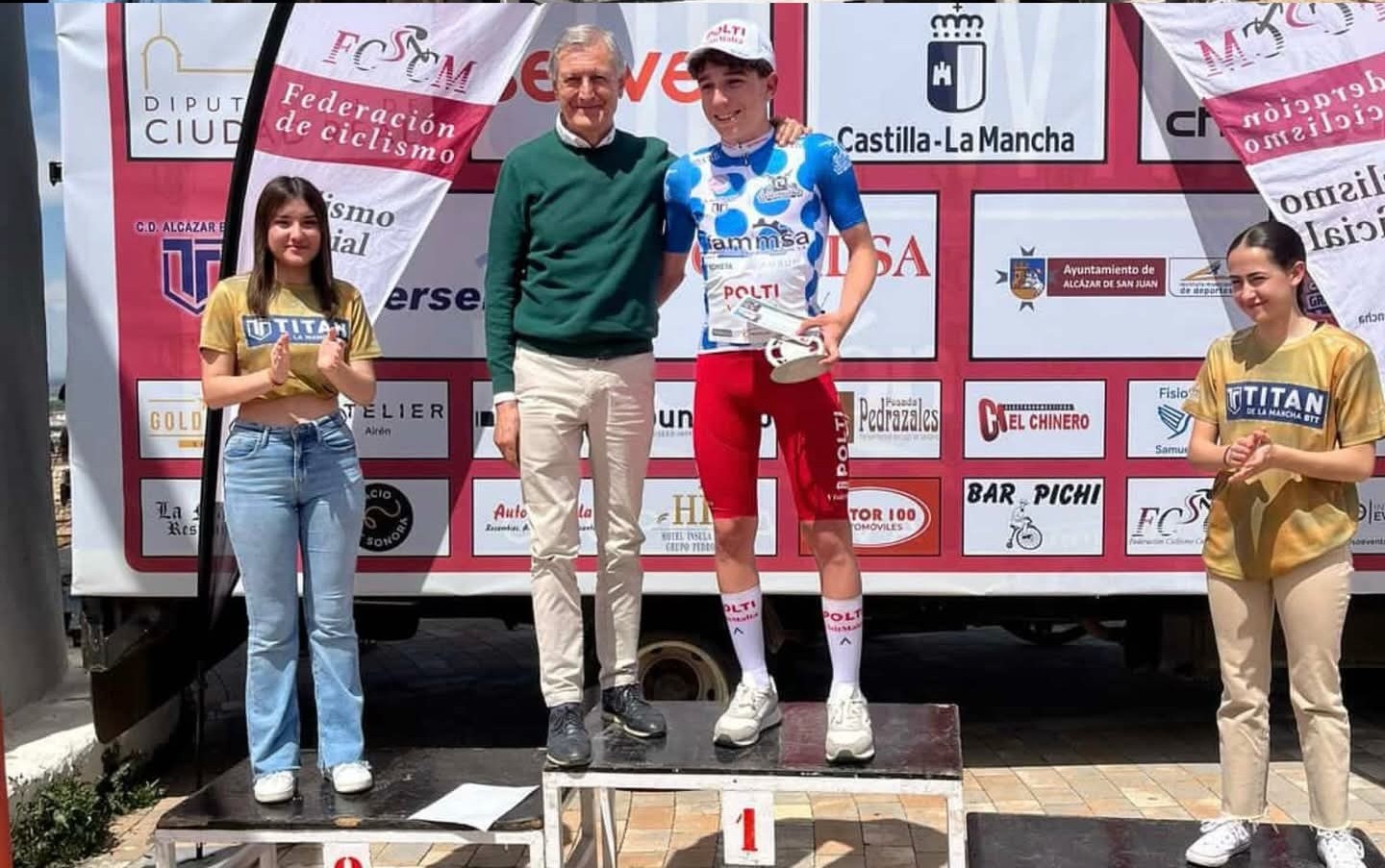 Hicieron entrega de los trofeos y maillots acreditativos José Luis Moreno, hijo de un histórico expresidente del CD Alcázar, Cristina Perea, concejala de Cultura de Alcázar y Ricardo Carreño, documentalista, coleccionista e informador histórico del ciclismo de Alcázar, que estuvieron acompañados por representantes de las firmas patrocinadoras.