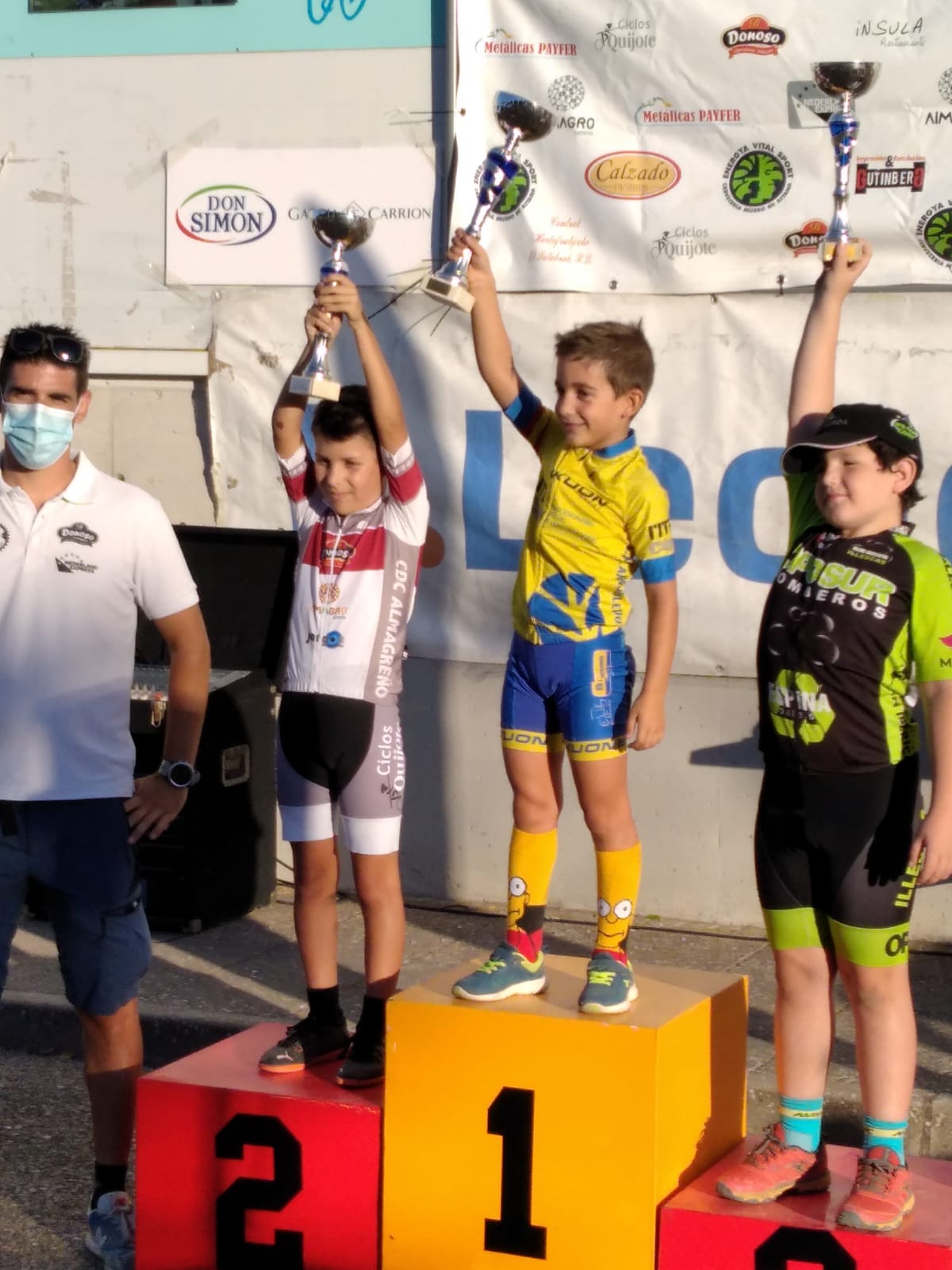 La jornada se cerró con la ceremonia protocolaria de entrega de trofeos, en la que participó el concejal de Deportes de Almagro, Jesús Santacruz. Y, de nuevo, el agradecimiento del Club Ciclista Almagreño al Ayuntamiento local, Diputación Provincial y Supermercados E.Leclerc, por hacer posible con su colaboración y patrocinio estas competiciones de ciclismo base.