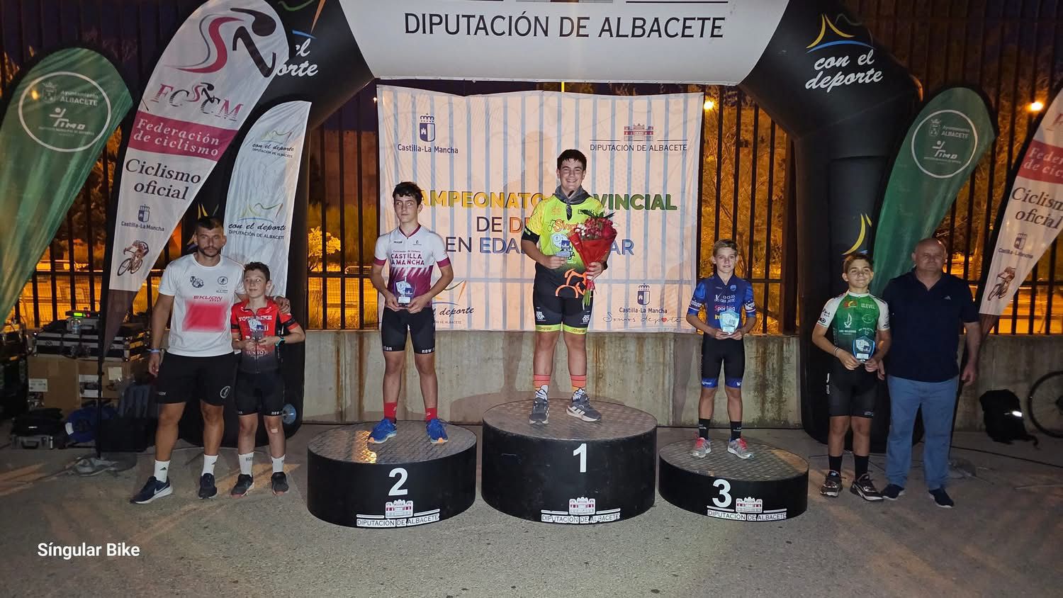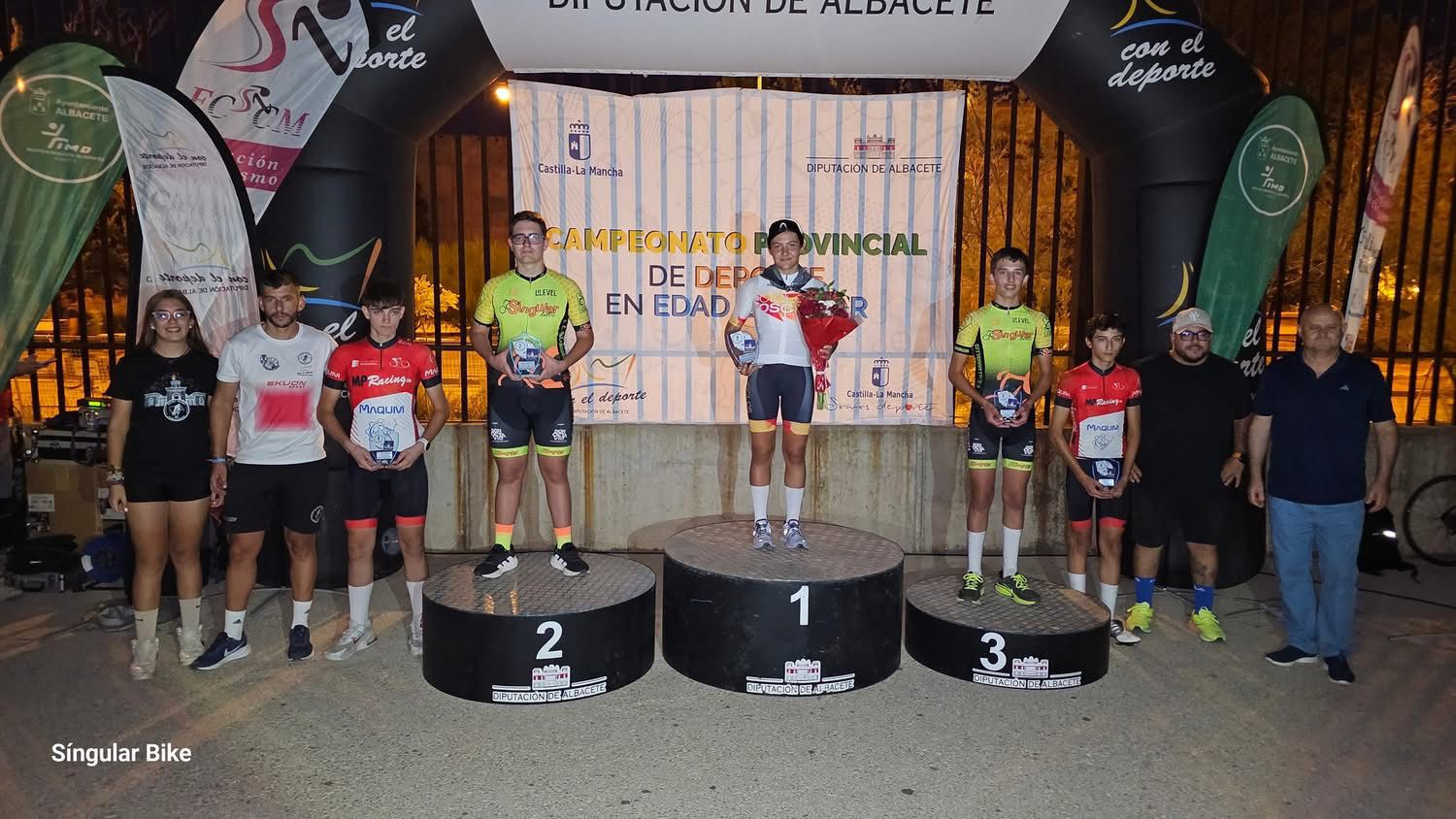 En la entrega de Trofeos, dos de los fundadores del nuevo club Escuela Ciclista Ciudad de Albacete, Antonio Galdón y José Manuel García, que estuvieron acompañados por todo un referente del ciclismo albaceteño: Héctor Carretero, de Madrigueras, exciclista profesional muy vinculado al nuevo proyecto del equipo cadete del club, el Dipualba-Arcos Team.