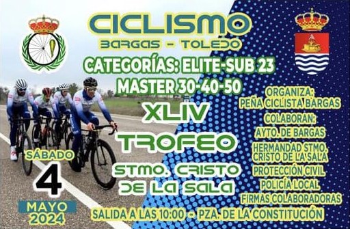 Tras el aplazamiento al que se vio forzado en marzo, finalmente la localidad toledana de Bargas se vestirá de largo este sábado 4 de mayo para acoger el XLIV Trofeo Santísimo Cristo de la Sala que en su edición 2024 está dirigido a las categorías élite, sub23 y máster.
