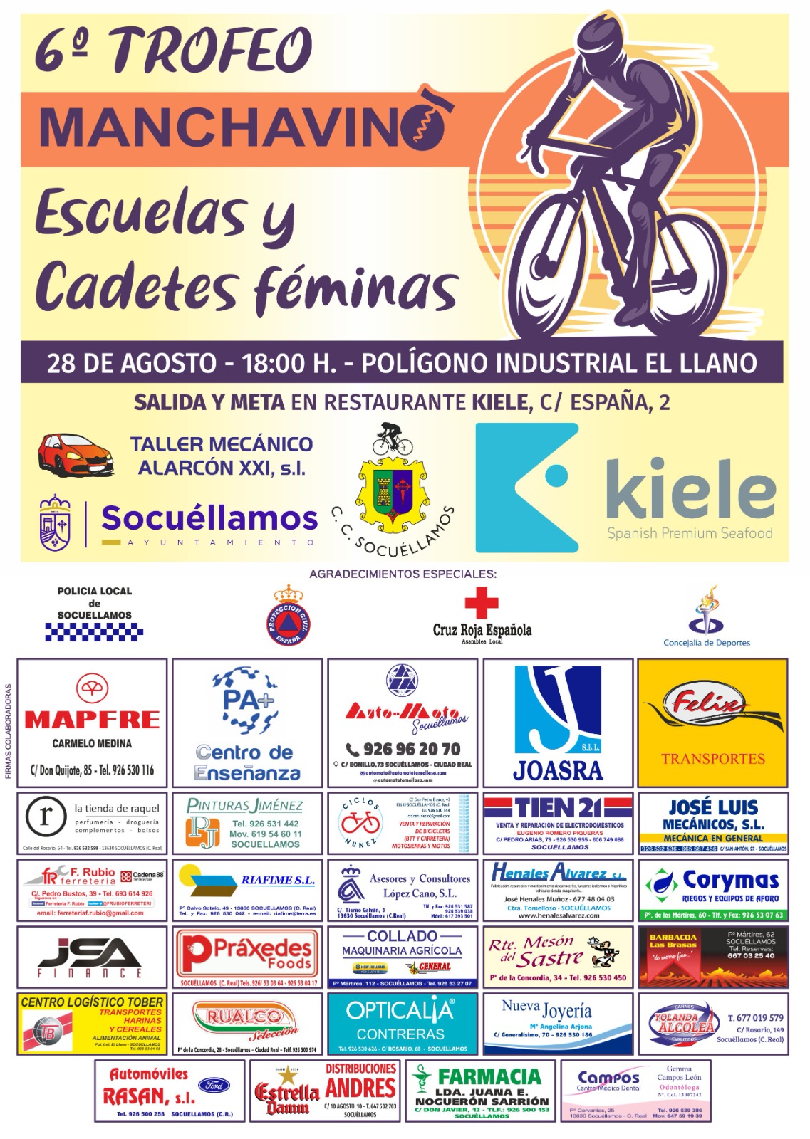 Todo listo en Socuéllamos (Ciudad Real) para albergar la VI edición de su Trofeo Manchavino, prueba ciclista para escuelas y cadetes féminas que el Club Ciclista Socuéllamos organiza el próximo sábado 28 de agosto, a partir de las 18 horas. La prueba está enmarcada en la XX edición de Manchavino, la Fiesta de la Vendimia en honor a la Patrona Ntra. Sra. de Loreto. El Trofeo vuelve dos años después a la localidad manchega: su última edición tuvo lugar en el 2019, en la Pista Paquito Jiménez, cerrando la temporada de pista para los escolares.